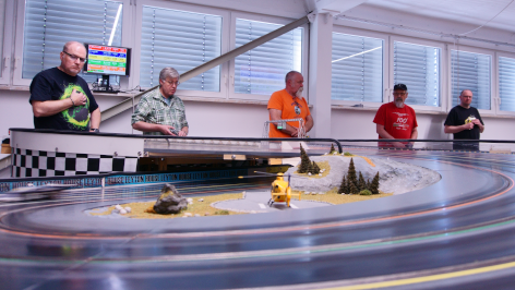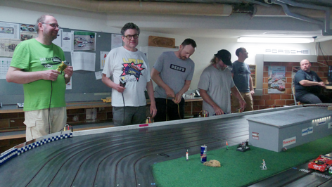 Ein tolles Feld von 15 Startern ermöglichte drei Startgruppen beim 2. Lauf zum SLP-Cup 2025. Mit Tom Scherer, langjährigem Stammfahrer in Schwieberdingen, und Joachim Welsch, seit Jahrzehnten eine bekannte Grösse in nahezu allen Slotracingklassen in Deutschland und SLP-CUP- Gesamtsieger 2013 traten zwei Gäse aus dem fernen Saarland zum Rennen an, dazu noch mit Martin Josefski ein schneller Neuling aus dem heimischen Club und mit Thomas Karle ein Urgestein aus der Region Stuttgart – fertig war ein buntes Gemisch aus Tempo, Erfahrung und Spass am gemeinsamen Spiel.